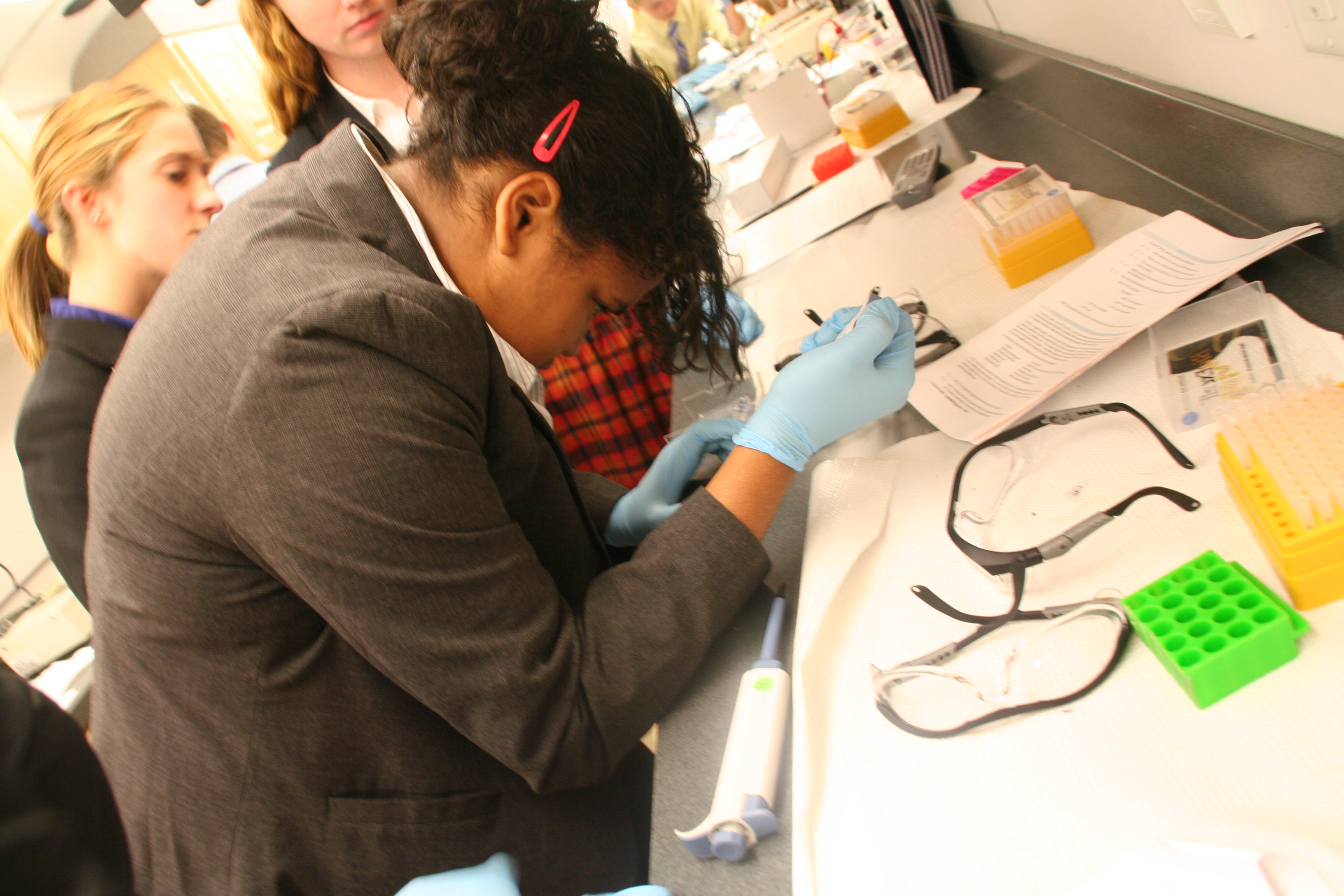 The day started early Tuesday with first period. Thirty eager students arrived on the bus to determine the results of the amplification of the DNA they extracted the day before. The PCR ran overnight, copying part of a conserved gene in plants, RuBisCo, that can be used to identify the species of land plants.