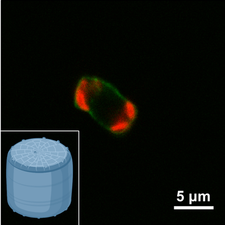Jernej Turnsek, PhD, a recent graduate of Harvard University and researcher in Dr. Allen’s lab, contributed his work on Thalassiosira pseudonana, a marine diatom that is crucial  for studying cellular mechanisms related to planetary carbon and silicon biogeochemical cycles.  Diatoms metabolize silicon, the second most abundant element in Earth’s crust, and use it to construct their elaborate silicified cell walls. This is a hallmark feature of these microorganisms and is one of the reasons for their dominance in global oceans, but how they do this silicon metabolism has been a central question in the research community for decades. In this study, Dr. Turnsek used bacterial conjugation to localize a biosilica-associated protein in T. pseudonana. This work sets the stage to use bacterial conjugation to study biomineralization processes in T. pseudonana, other silicified diatoms, and also non-diatom silicified species.